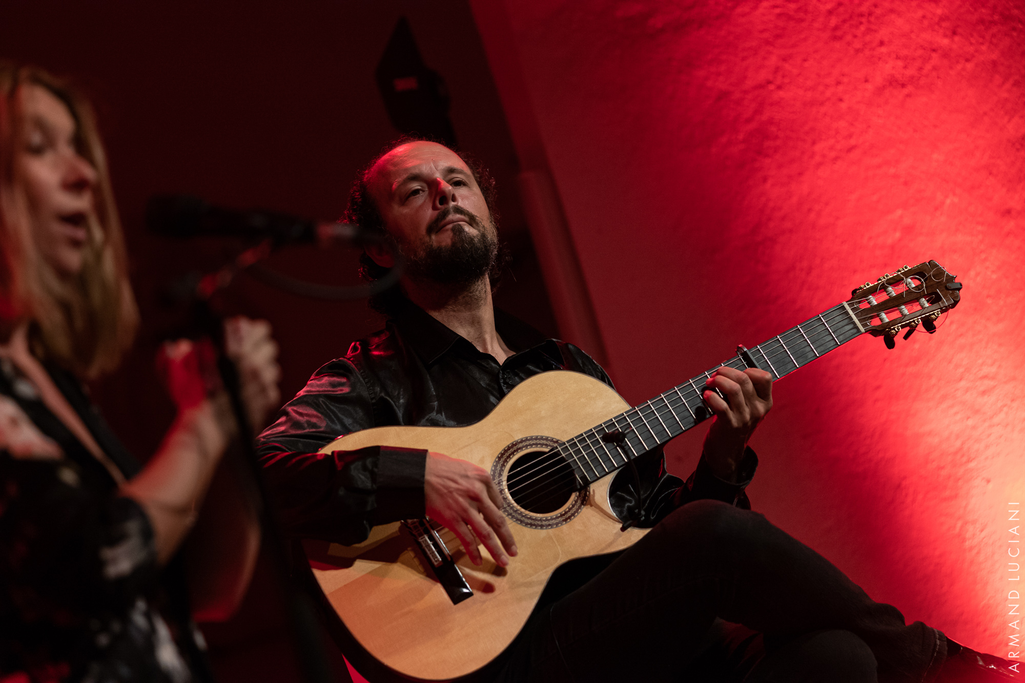 Juan Antonio Suarez “Canito” (Barcelona, 1971) nace en el seno de una familia gitana de origen extremeño, de larga tradición musical y refinada cultura. La guitarra forma parte de su cuerpo desde que tiene uso de razón, prácticamente nació con ella en las manos, lo que hace de Canito un músico capaz de expresarse con su instrumento con la soltura y la facilidad con que un consumado orador lo hace a través de la palabra, y le ha llevado a formar parte de esa amplia élite de músicos flamencos de vanguardia que hacen de España una potencia mundial de la guitarra. La propuesta que hoy nos ofrece bajo el título de “Resonemos con la música”, toma la forma de una invitación directa y cómplice al público. El verbo resonar implica empatía, participación y disposición. Canito nos invita a compartir la misma vibración. A resonar juntos con la música compuesta por él, a dejarnos seducir por sus melodías, sus ritmos y sus armonías que nos cuentan mil y una historias. Y lo hace de la manera más franca y directa posible: sólo con su guitarra limpia y desnuda. Sin aditivos. Por prescindir, hasta prescinde de la eterna silla. Únicamente están su guitarra, sus manos, su cuerpo y el público. Canito se planta de pie sobre el escenario, sin coreografías, dejándose llevar de manera orgánica por la música que sale de su guitarra, de sus manos, y nos habla en un lenguaje tan personal como universal, tan individual como colectivo, tan sutil y etéreo como rotundo y directo. Nos habla con su guitarra, pero desde el corazón y la verdad: el corazón del gitano universal y la verdad del ser humano transparente y desnudo.